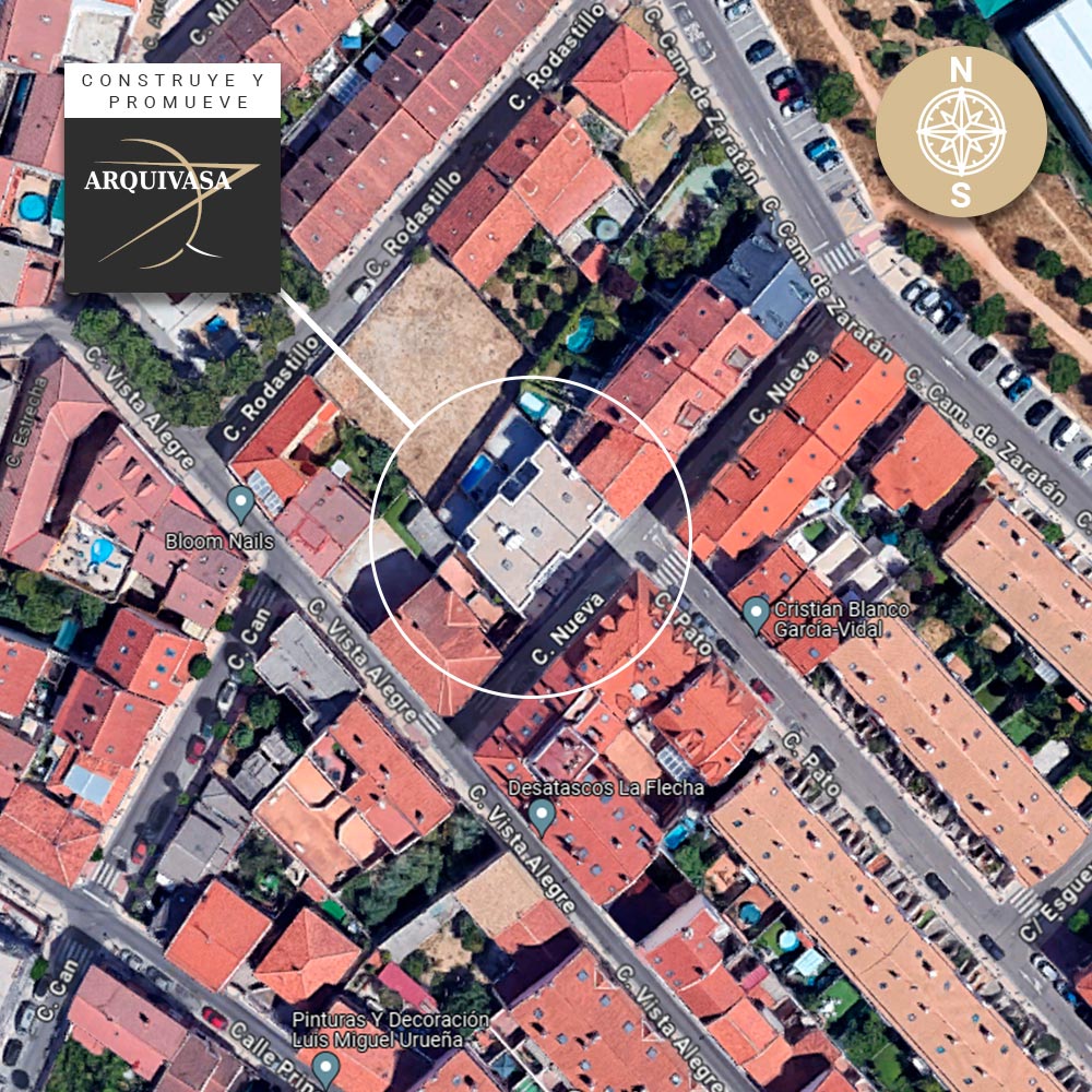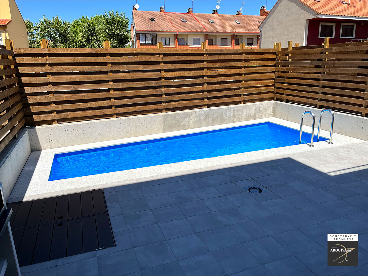 La Promoción construida en la Calle Nueva (Arroyo de la Encomienda – Valladolid) está formada por 3 exclusivas y amplias viviendas unifamiliares adosadas, con Certificación Energética A, compuestas por Salón, Cocina, 3 Baños completos, 4 Dormitorios, 1 Vestidor, 1 Terraza, 1 Patio y 1 Garaje.